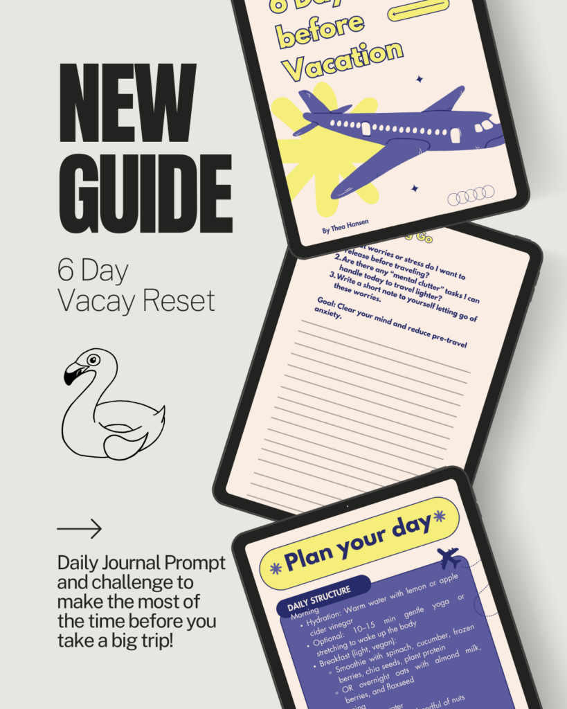 In this video, I’ll guide you through workouts + wellness tips you can easily follow to reset your body and mind before you leave. Perfect for anyone who wants to step on the plane feeling strong, calm, and ready for adventure!